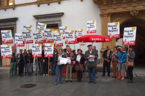 KPÖ-Klubobfrau Klimt-Weithaler: „Sollten SPÖ und ÖVP heute tatsächlich beschließen, dass künftig Enkel für ihre Großeltern regresspflichtig werden, wäre das ein Schlag ins Gesicht aller Steirerinnen und Steirer, die gegen den Regress unterschrieben und auch bei der Nationalratswahl ein Zeichen gegen den Regress gesetzt haben. Wollen Voves und Schützenhöfer wirklich, dass zehntausende junge Menschen, die es aufgrund der Belastungspolitik ohnehin nicht leicht haben, für die Pflege ihrer Großeltern zahlen müssen? Sollen Familien dazu gedrängt werden, die Steiermark zu verlassen?“