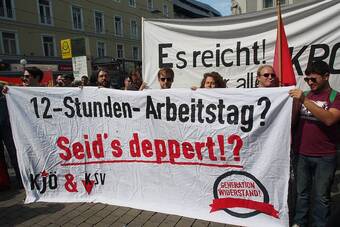 Bis zu 12 Stunden wird die tägliche Arbeitszeit in Österreich betragen. Die wöchentliche Höchstarbeitszeit wird von 48 auf 60 Stunden erhöht. Überstunden werden in diesem Rahmen nicht mehr bezahlt, sondern als Gleitzeit gewertet. Darauf haben sich ÖVP und FPÖ in ihren Regierungsverhandlungen geeinigt. Das wird nicht nur zu einer massiven Lohnsenkung, sondern auch zum Anstieg der Arbeitslosigkeit führen, warnt die KPÖ.
