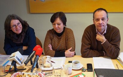 06-02-15 Pressekonferenz in Kapfenberg - KPÖ präsentiert Forderungen. Die KPÖ fordert: Eine tatsächliche Erhöhung der Wohnbeihilfe, die Einrichtung eines Kautionsfonds für Härtefälle (wie in Graz) sowie das Einfrieren der Mieten für Gemeindewohnungen für die nächsten zwei Jahre.