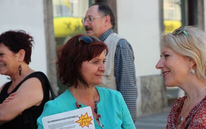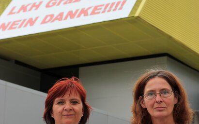12-07-12 "Verschlechterungen nicht kampflos hinnehmen!". Bei der heutigen Protestkundgebung der Beschäftigten des LKH Graz West, das von der Landesregierung privatisiert werden soll, sprachen sich Claudia Klimt-Weithaler, KPÖ-Klubobfrau im steirischen Landtag, sowie die Grazer Wohnungsstadträtin Elke Kahr mit deutlichen Worten gegen die Pläne der „Reformpartnerschaft“ aus.
