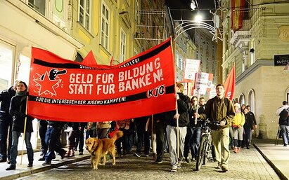 10-11-11 200 bei Demo in Graz. Mehr als 200 Studierende protestierten am Mittwoch in Graz gegen Studiengebühren. Anlass war der Besuch von Wissenschaftsminister Karlheinz Töchterle.