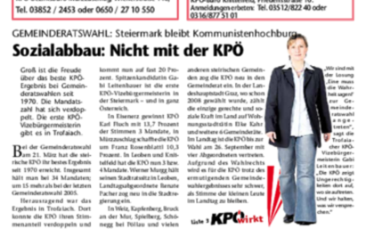 01-06-10 Langjähriger Verantwortlicher für KPÖ-Kommunalpolitik verstorben. Der langjährige Verantwortliche für KPÖ-Kommunalpolitik, Franz Hager, ist am 29. Mai, im 91. Lebensjahr verstorben. Mit ihm verliert auch die steirische KPÖ einen kompetenten und prinzipienfesten Genossen der - um nur ein Beispiel zu nennen - die ersten Schritte von…
