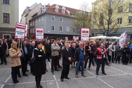 Wie in mehreren österreichischen Städten versammelten sich am 27. März auch in Graz hunderte Bankbedienstete am Tummelplatz, um für einen gerechten Gehaltsabschluss zu kämpfen. Die GPA-djp hat einen Streik nicht ausgeschlossen, um dieser Forderung Nachdruck zu verleihen. Die Banken bieten lediglich eine Erhöhung, die nicht einmal die Teuerung ausgleicht, also einen Lohnverlust bedeuten würde.