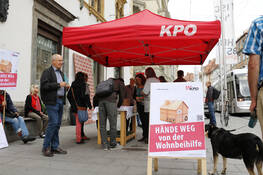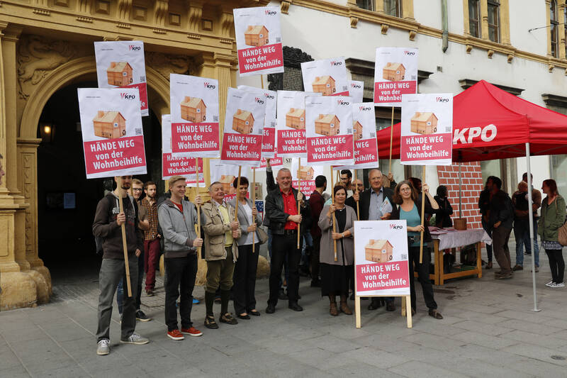 Vor, in und nach der Landtagssitzung macht die KPÖ gegen die Abschaffung der Wohnbeihilfe mobil