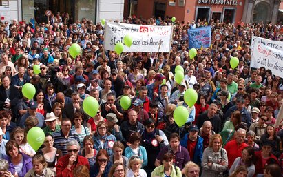 25-04-11 KPÖ-Erklärung zur Demonstration am 26. April 2011 in Graz. Die selbsternannte „Reformpartnerschaft“ will in den nächsten beiden Tagen ein brutales Kahlschlagbudget durchziehen. Der Schaden, den diese Regierung anrichtet, wird durch Phrasen vom „Sparen“ schöngeredet. In Wirklichkeit geht es aber um die Zerschlagung des Sozialsystems.