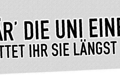 02-11-09 Wär die Uni eine Bank, hättet ihr sie längst gerettet. „Studiengebühren oder Zugangsbeschränkungen“, das ist das Menü, das uns Studierenden derzeit angeboten wird. Andere Alternativen gebe es nicht, dafür sei kein Geld vorhanden, tönt es einstimmig aus Wissenschaftsministerium und Rektorenbüros, brav unterstützt von der Industriellenvereinigung.