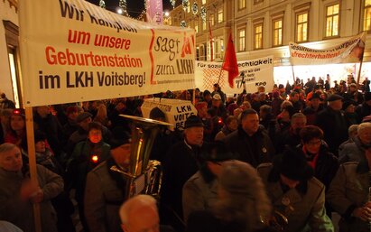 10-12-12 KPÖ: Schließung der Geburtenstation ist unverantwortlich!. Unter dem Titel „Schließung der Geburtenstation Voitsberg: Wird die Gefährdung von Müttern und Kindern bewusst in Kauf genommen?“ hielt der steirische Landtag am 11. Dezember auf Antrag der KPÖ in der Landtagssitzung am 11. Dezember eine Aktuelle Stunde ab.