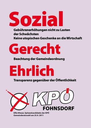 Die KPÖ tritt bei der Wahl unter dem Motto „Sozial – gerecht – ehrlich“ an.
