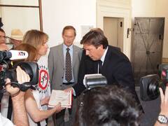 Diese 87 wurden ja vor kurzem am ersten „Tag der ,einzelnen‘ Härtefälle“ präsentiert – trotz persönlicher Einladung bleiben Voves und sein Stellvertreter Schützenhöfer damals jedoch der Veranstaltung fern. Darum hat die Plattform 25 den Landeshauptmann heute mit der Übergabe der Sammlung im Landhaus „überrascht“.